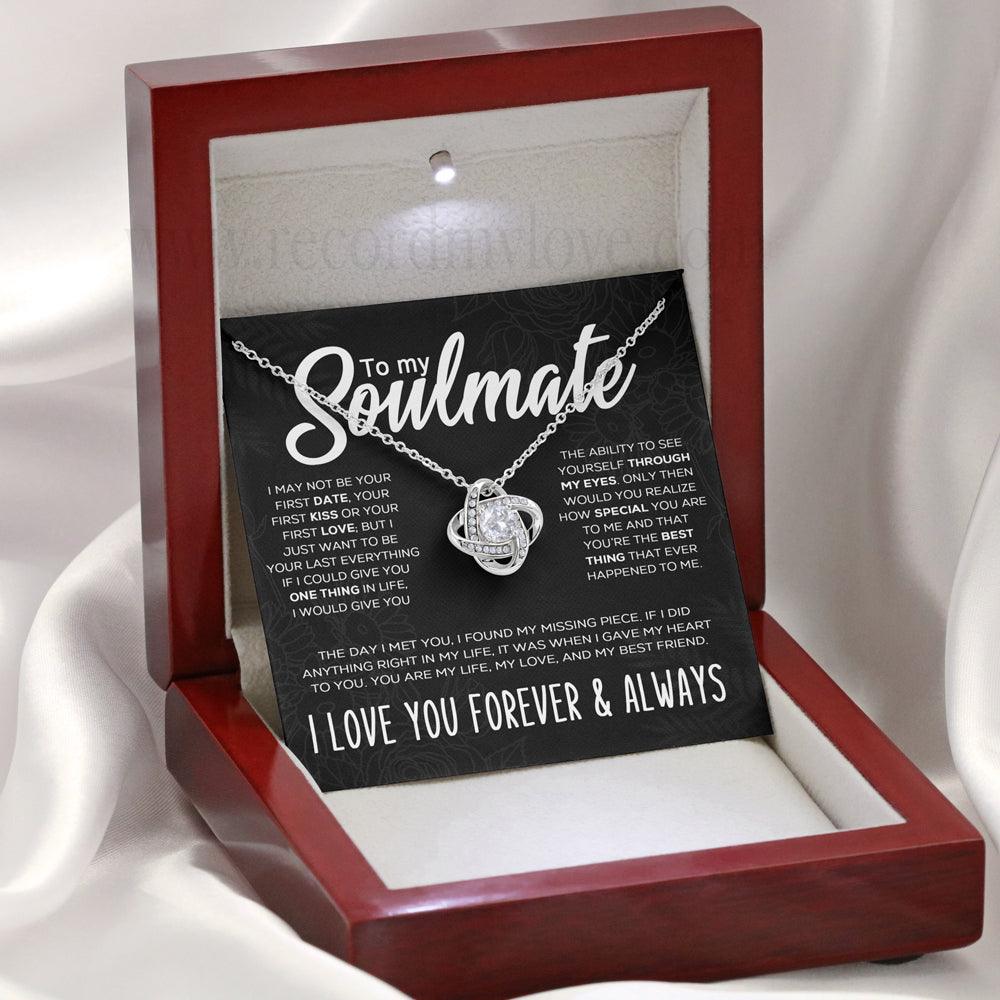 Langweilige traditionelle Geschenke gehören der Vergangenheit an – wählen Sie stattdessen etwas wirklich Einzigartiges und Bedeutsames, das Ihr besonderer Mensch für immer in Ehren halten wird. Dieses Produkt wird mit einer Nachrichtenkarte für Ihren Seelenverwandten und einer wunderschönen Luxusbox im Mahagoni-Stil mit LED-Lichtern geliefert, die beim Öffnen blendet. Die Halskette hat eine verstellbare Verlängerungskette von 40+5cm.