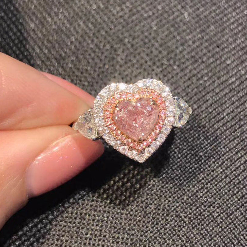 Bague simple en argent et zircone à haute teneur en carbone en forme de cœur